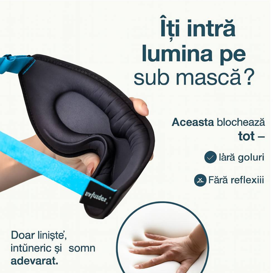 Mască de somn 3D – 100% blocare a luminii, confort total pentru femei și bărbați, design premiat
